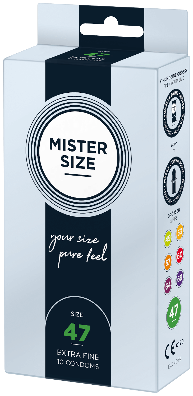 Mister Size wurde auf Basis unserer langjährigen Erfahrung als Erfinder der Marke MY.SIZE entwickelt. Dieses Know-how floss unter anderem in die Materialauswahl und Wandstärke ein. Mister Size 47 wird aus besonders dünnem und geruchsneutralem Naturkautschuklatex hergestellt und ist darauf ausgelegt, ein möglichst natürliches Empfinden zu unterstützen – bei gleichzeitig zuverlässiger Passform und Sicherheit in Größe 47.